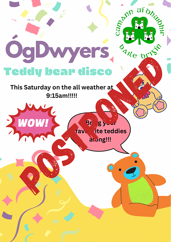 Guys we have taken the decision to postpone our teddy bear disco nursery special in the morning due to bad weather forecast. We dont want children getting sick. BUT we will be having it the following weekend. Stay safe