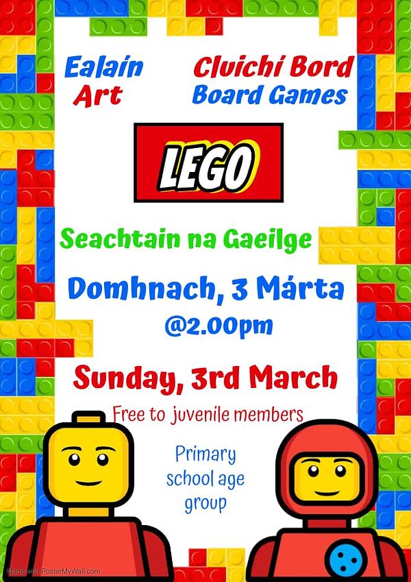 Reminder….. Lego fun in the club tomorrow 🤩🤩🤩Looking for a fun Sunday activity for your child ???? And want to embrace the fun of Seachtain na Gaeilge???🤩look no further than this fantastic afternoon of Lego planned by Aisling……free to juvenile members 🔥🔥🙌🏼🙌🏼💚💚