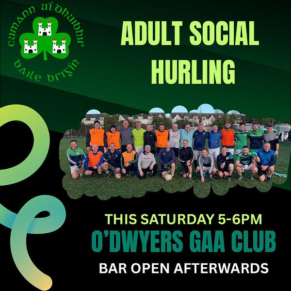 Social hurling takes place this Saturday from 5-6pm in the club! Enjoy a fun and non-competitive game before heading into the clubhouse bar! 🔥