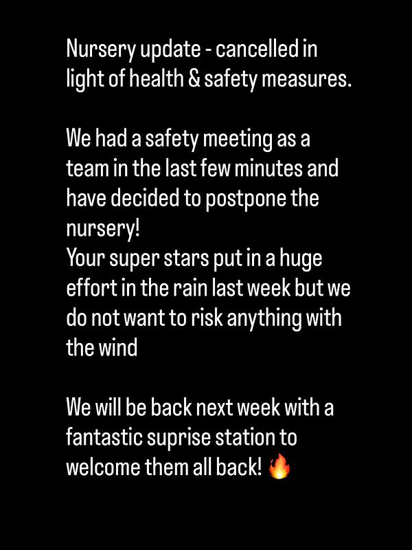 Your super stars put in a huge effort in the rain last week but we do not want to risk anything with the wind