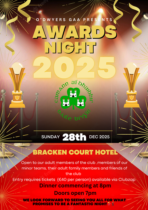 Tickets to the night can be purchased via this link https://odwyersgaa.clubzap.com/products/32340/purchases/new.