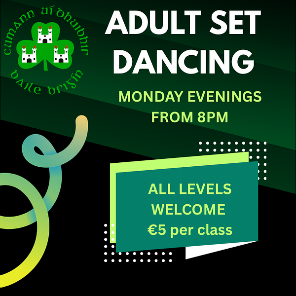 Adult set dancing class is resuming in O'Dwyers GAA new clubhouse, K32 TK53, this Monday night 12th January at 8pm. To mark the occasion we have live music with Joe Hughes & Mary O'Connor for our first class. Spread the word. Everyone welcome.