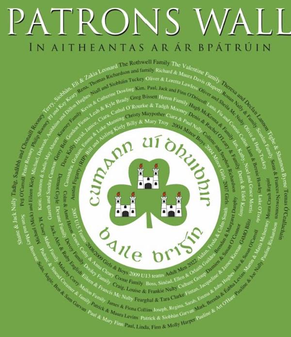 Over the last number of weeks, various members have expressed an interest in participating in the club Patron scheme for our new facilities. The monies raised will directly go towards phase 1 completion and phase 2 activities; Floodlight Pitch 1 and Solar panel installation