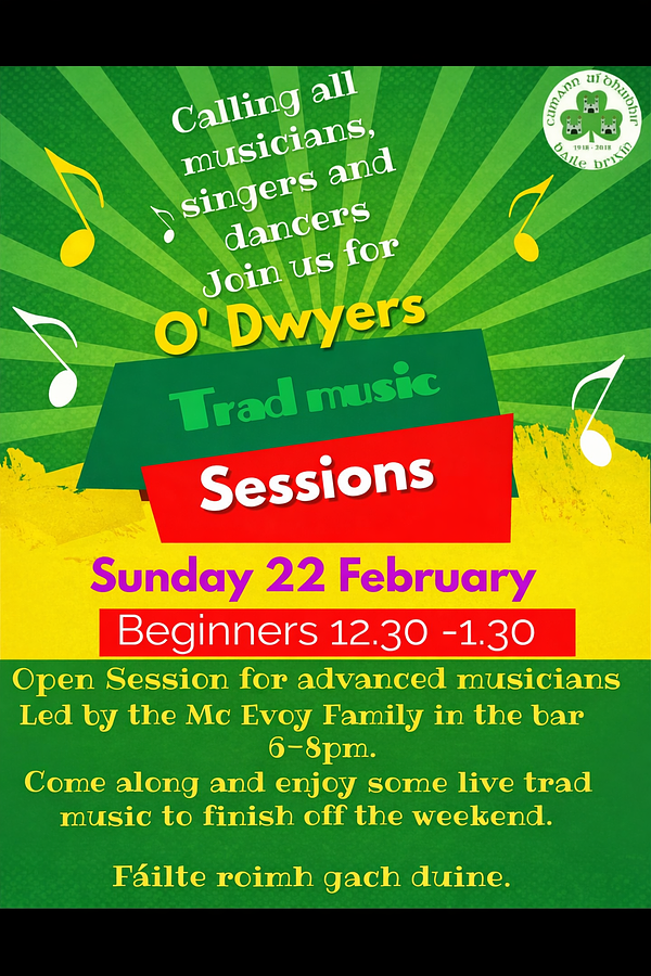 💚Tràd session on Sunday from 12:30pm-1:30pm for beginners and 6pm-8pm for advance musicians with the Mc Evoy family💚