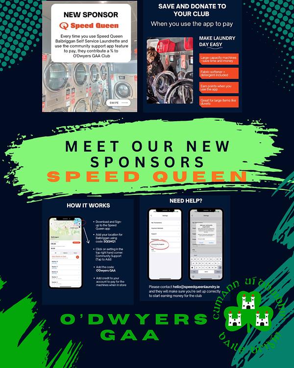 We are proud to welcome Speed Queen Balbriggan Self Service Laundrette as an official sponsor of O’Dwyers GAA Club!