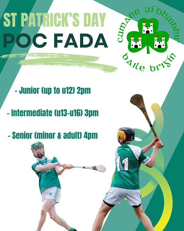 We are excited to announce that once again this year we’ll have a Poc Fada competition on St Patrick’s Day 💪🏼✅