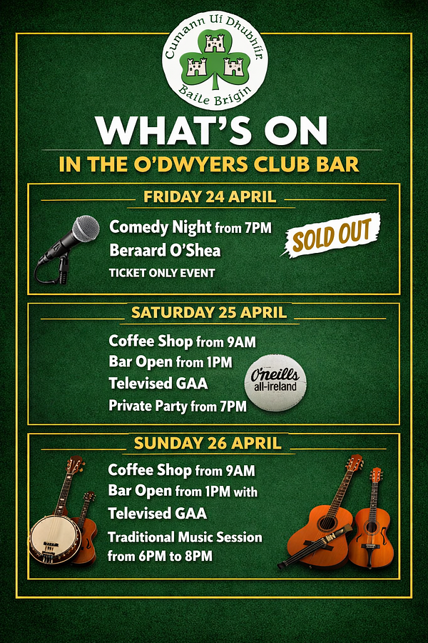 There’s something for everyone this weekend in O’Dwyers GAA Club Bar 🍀