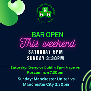 Bar open this weekend!💚 both Saturday and Sunday ; live GAA on Saturday and some Premier Leagu...